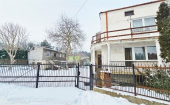 Na działce znajduje się podpiwniczony budynek mieszkalny w zabudowie bliźniaczej, pow. zabudowy ok. 60 m2, pow. użytkowej ok. 110 m2