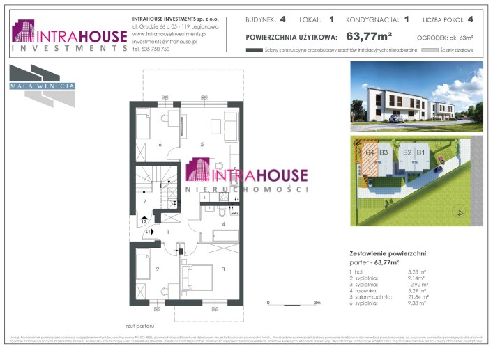 łącznie projektowana powierzchnia lokalu 63,77 m2